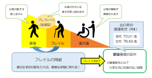 山口県後期高齢者医療広域連合では、被保険者の皆様の健康寿命を延ばすため、健康診査・お口の健康診断(歯科健康診査)でフレイルのチェックを実施しています。